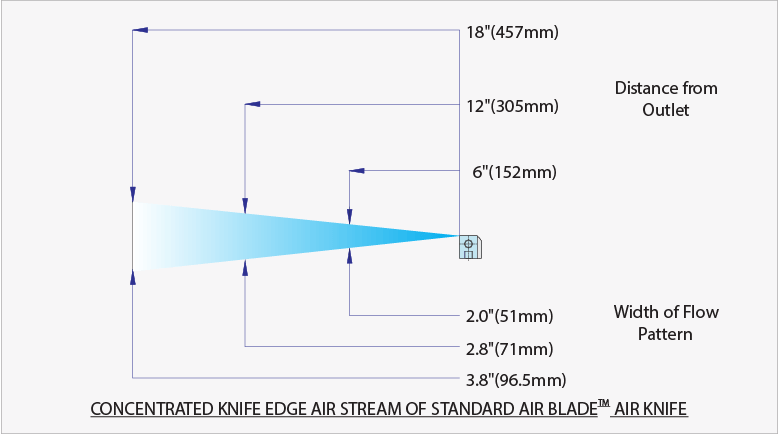 The Standard Air-Blade™ Air Knife is available in eight standard lengths: 3″ (76mm) , 6″ (150mm) , 8″ (203mm), 12″ (300mm), 18″ (457mm), 24″ (609.5mm), 30″ (761mm), 36″ (914mm)