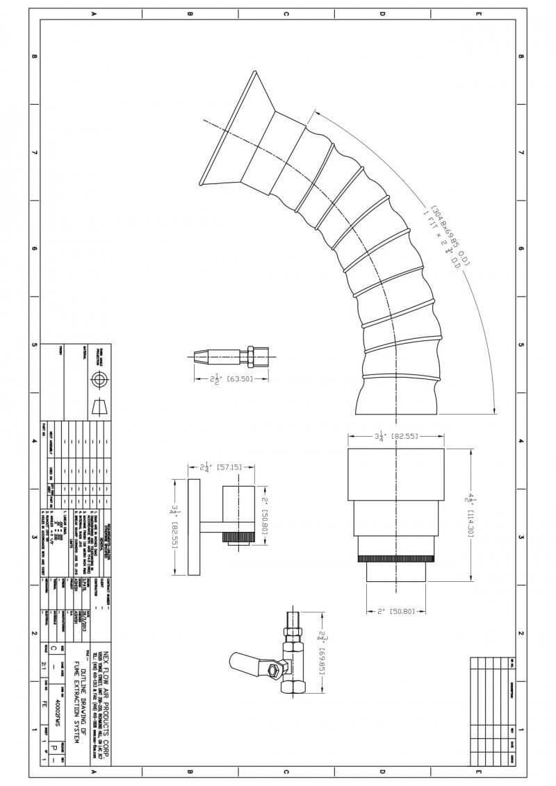 The Model 40002FMS STREAM VAC™ is a versatile and affordable compact air cleaning system is ideal for the removal of fumes, dust and other air pollution from work stations without the need for heavy and bulky machinery. The Nex Flow™ Stream Vac™ is an in line air conveyor that when hooked up to a 2” hose up to 25 feet (8 meters) and connected to a compressed air line, it will remove up to several hundred cubic feet of air while using only a minimal amount of compressed air, taking with it welding fumes, soldering fumes, particulate from local grinding operations, smoke and particulate from almost any “spot” application.