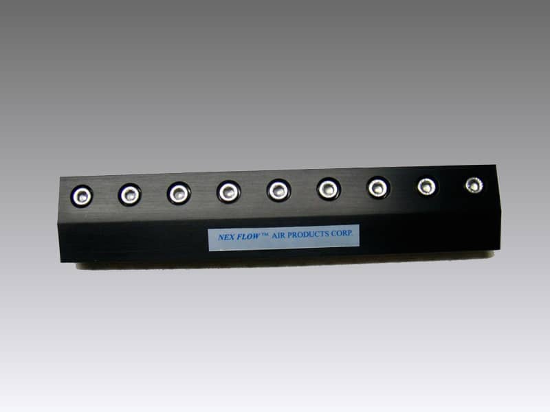 Available in 2”, 3”, 6”, 9”, 12”, 15”, 18”, 24”, 30”, 36”, 42”, 48” and 54” lengths as standard they can also be coupled together using a coupling kit for longer spans. The Nex Flow™ X-Stream™ Air Blade™ has proven to be of high quality, high performance and one of the most quiet, if not “the most quiet” designs on the market for all types of blow-off and cooling applications. Eliminating a row of drilled pipe can save up to 90% of compressed air costs.
