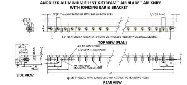 Special materials and static bars can be utilized for unique applications. If greater blow-off force is required, shims may be added to the Air Blade™ Ionizer for higher capacities. - + Dimensions