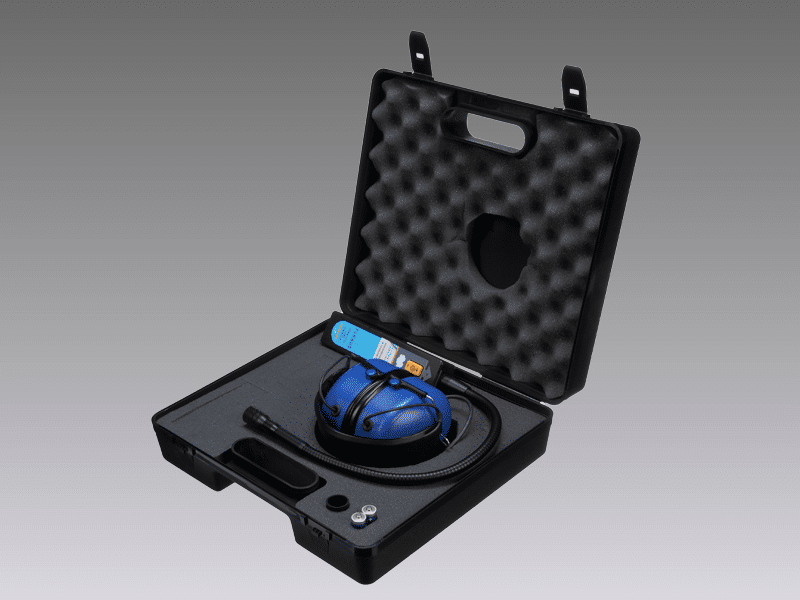 The Ultrasonic Leak Detector comes in a handy carrying case to store the unit and quality headphones. The headphones are durable and of high quality to cut out extraneous noise that would make it difficult to detect leaks.